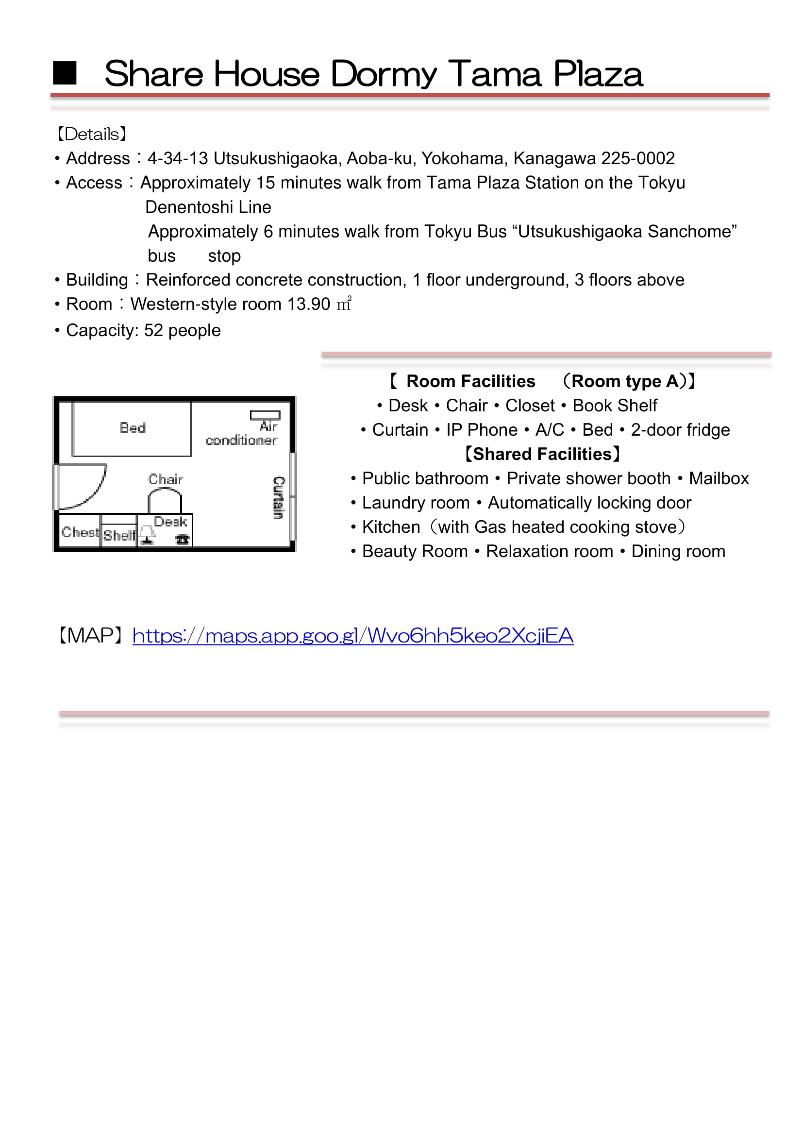 シェアハウス ドーミーたまプラーザ ※食事提供なし シェアハウスドーミータマプラーザ Share House Dormy Tamaplaza |